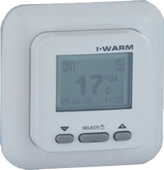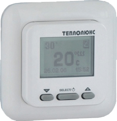 Комнатный терморегулятор с выносным датчиком температуры пола. Прибор позволяет значительно снизить энергопотребление теплых полов, путем поддержания комфортной температуры только в рамках установленных временных интервалов и только тогда, когда в этом есть необходимость. Большой графический дисплей с подсветкой и тремя кнопками управления. Дружеский "интуитивный" интерфейс "в одно касание". Наличие встроенного меню, позволяющего управлять всеми функциями (аналогично мобильному аппарату). Встроенный монтаж. Многорежимный термостат со встроенным блоком реального времени и календарем. Встроенный экономайзер. Прибор собирает и хранит всю информацию о системе обогрева, позволяющую пользователю контролировать свои расходы без жертвования комфортом. "Интеллектуальное" программное обеспечение, определяющее характеристики тепловых процессов помещения. Пользователь может указать только временные интервалы, когда ему необходим обогрев, прибор берет все заботы на себя. Дополнительные функции - часы, календарь.